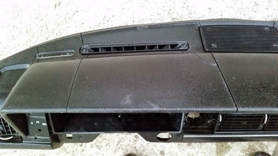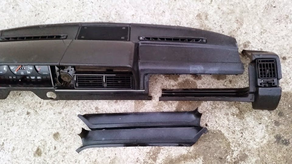 Csak az érdekesség miatt, a pótlások gyári új alkatrészekkel, műszerek nélkül (tehát csak a műanyagok, díszítő/takaró elemek stb,) mintegy 80-100e Ft. A műszerfal valamilyen kevert kemény szivacs, így a törött rész egész biztosan ragasztható, a teteje pedig egy flokkolást fog kapni tervezetten.